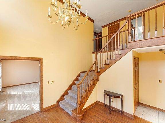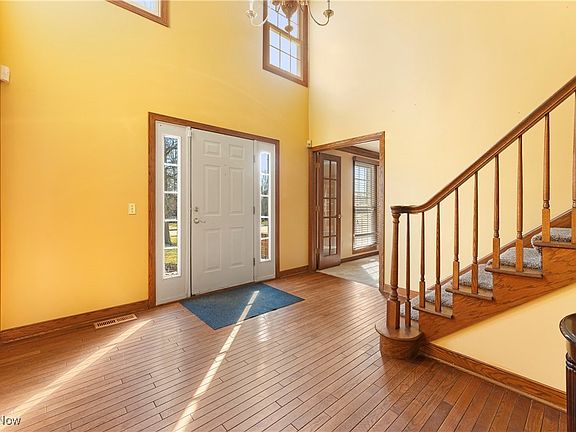 Welcome to this stunning 4-bedroom, 2.5-bath colonial home in North Canton, conveniently located near shopping and entertainment. Step into the grand and welcoming foyer, setting the tone for the warmth and charm this home offers. The private and cozy living room provides the perfect retreat, complete with an attached study featuring built-in shelving, ideal for a library or home office. The spacious dining room with crown molding is perfect for entertaining, offering plenty of room for gatherings. A stylish half bath with a vanity sink is convenient for guests. The eat-in kitchen boasts a large working space, an island with a gas range and storage, stainless steel appliances, and abundant cabinetry, including a pantry. It also offers access to the deck, making outdoor dining a breeze. The inviting family room is a cozy gathering space with a fireplace, a wet bar, and an abundance of natural light. Enjoy a view of the park-like backyard from the sunroom at the back of the house with access to the deck, making it the perfect spot to enjoy a morning coffee while taking in the serene surroundings. Just off the garage, the mudroom includes laundry hookups, a utility sink, built-in cabinetry, and closet for extra storage. Upstairs, you'll find four generously sized bedrooms, a large linen closet (5x7) in the hallway, and a guest bath with a shower-tub combo and a extra large vanity. The luxurious master suite is a true retreat, featuring a massive bedroom, an ensuite bath with a garden tub, a separate shower, water closet, and a walk-in closet with built-in shelving. The partially finished basement is ready to accommodate your needs and a large unfinished space perfect for storage and includes a work bench. The backyard offers a concrete patio and a large deck providing the perfect setting for outdoor entertaining. This beautiful colonial home is a must-see—schedule your showing today!