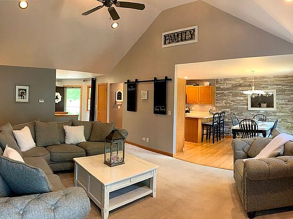 SO much larger than it looks!! This beautiful custom built 4 bedroom, 3 bathroom ranch home is seeking a new family to enjoy all the space it has to offer. Fully finished basement has 2nd gas fireplace, large storage area hidden from living space. An additional room perfect for work-out equipment, home office, or as it is now, a child’s playroom. 4th bedroom and 3rd full bathroom are also located on lower level. Main level has open concept and vaulted ceiling living room with wood burning or ceramic log gas fireplace, 3 bedrooms and 2 full bathrooms. Custom closet barn doors in 3rd bedroom. Walk-in closet in master bedroom and generously sized closets in other 3 bedrooms. Stainless steel appliances in kitchen, cabinet lighting, bar stool peninsula, and corner sink with windows to enjoy views of the park. Dining area wall updated with barn wood in 2019. Front and back garden has beautiful perennial landscaping. Large back deck just refinished in summer 2018 in fenced in backyard. Natural gas hook-up for outdoor grill. New roof in 2014 with architectural shingles. New AC in 2014 as well. Enjoy sitting on spacious front porch, views of stunning landscaping, paver brick sidewalk, and family park across the street, which includes a playground for the little ones, a basketball court, tennis court, and a baseball diamond. This home is located within walking distance to great schools, the historic Woodstock Square, and Metra Train Station. Definitely a MUST SEE! To schedule a showing, please call or text Kristin at 815-790-3723.
