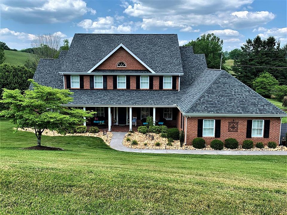 WELCOME to this beautiful Southern Living plan home in Lebanon, Virginia. Set on 2.3 acres at the foot of the majestic Clinch mountains, the lovely, covered front porch draws you into this gracious 2-story brick colonial with 5 BR, 4.5 Bath beauty. The living room/his office & dining room/her office grace the foyer. Grand columns frame the entrance to the grand great room with cathedral ceiling. The dramatic two-story great room beckons you to gather around the gas fireplace with custom cabinetry surround. The light and bright kitchen offers white raised panel cabinets, a center island, tons of storage, neutral granite counter tops & glass tile back splash. The upgraded kitchen appliances are a cook's dream! Access the covered back porch spanning the entire house from the eat-in kitchen area . More storage is available in an extra pantry closet in the laundry/mud room. Two-car attached garage and tons of parking for up to ten cars on the freshly sealed driveway.