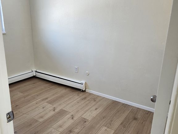 Just finished being remodeled. New laminate floor and tile throughout. Off street parking, free boiler heat, city water and on site laundry. Only $1150/mo and $1150 deposit. Ready now. Please submit your Zillow application, with income docs to get approved. Video tour available on YouTube, search the address.
