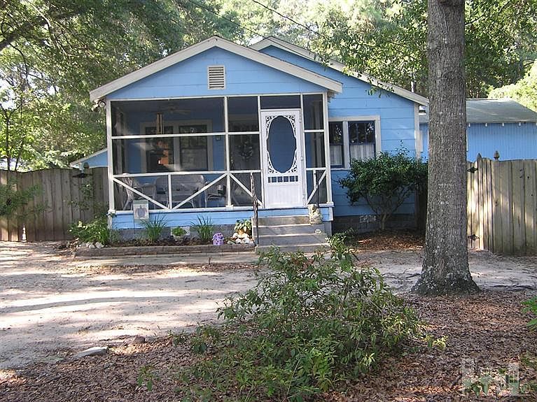 Amazing Vintage Cottage with Deeded Water Rights to ICWW!!! Beatifully remodeled with addition of Master Bedroom & Master Bath! Heart of pine custom kitchen cabinets and gorgeous stainless steel appliances including refrigerator. Master Bedroom features 2 skylites, cathedral ceiling, ceiling fan, walk-in closet and antique wood doors. Huge whirlpool tub in master bath. Heart of pine floors throughout. Secret Loft area above 2nd bedroom. Enormous screened porch, deck and brick-paver patio is a delightful entertainment area in back yard. One-car detached garage now being used for storage. Very private large lot with mature trees. Water access lot at end of road has gate--only owners on Seaview Road have a key for gate! This Home is a Must See!!