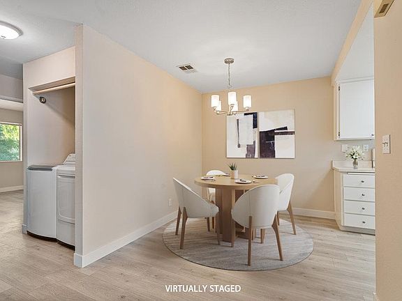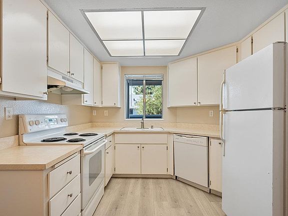 Welcome to this light-filled, move-in ready 2-bedroom, 2-bath, second-story condo in the sought-after gated New Horizons community. Fresh interior paint, stylish LVP flooring, central AC, elegant plantation shutters in the living room, vaulted ceilings, and a private patio surrounded by trees for added privacy create a modern yet serene living space. Enjoy the convenience of an in-unit full-size washer and dryer, and relax by the sparkling community pool on warm days. Perfectly situated for commuters, youre just a short walk to Tamien Caltrain and VTA Light Rail, and only 10 minutes from local shopping, including Whole Foods, Target, and Costco, as well as downtown Willow Glen and downtown San Jose. Easy access to Highways 87 and 280 makes this home the perfect blend of comfort, convenience, and location in the heart of San Jose.
