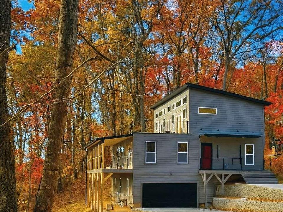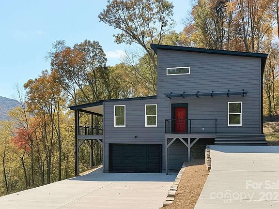 This stunning modern two-story home with a bright, open layout designed for comfort and style. The main floor features a spacious living area, kitchen, laundry, and two bedrooms, while the upper level includes two more bedrooms, a master suite with a private bath, and access to a large sun deck — perfect for enjoying the beautiful mountain views. Additional features include a 699 sq. ft. garage, two covered porches, and over 650 sq. ft. of outdoor deck space for entertaining or relaxing. Placed in quite and safe estate. 5 min to I-40 - 20 min to West Asheville