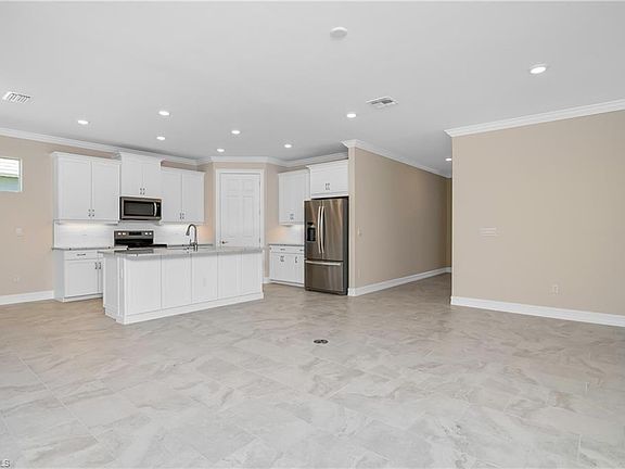 This brand new, never-lived-in South Naples home is the perfect mix of modernity and Florida living. Built by D.R. Horton, this Delray floor plan offers plenty of space - from an extra flex room to a two-car garage! The great room, dining area, and kitchen are joined together for easy entertaining in an open concept design. The kitchen boasts stainless steel appliances, quartz countertops, 42” soft-close cabinets, and a convenient island and pantry. Easy-to-clean tile floors adorn the wet areas of the home, while plush carpeting is in the bedrooms for added comfort. The master suite is fit for a king - with two walk-in closets, dual sinks and a walk-in shower. The remaining two guest bedrooms are split from the master suite, sharing the second bathroom that sits in between. The home also includes a private lanai that overlooks landscaping in the rear of the home. Tamarindo is an up-and-coming community in South Naples with 251 doors, resort-style amenities, and reasonable HOA fees.
