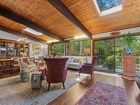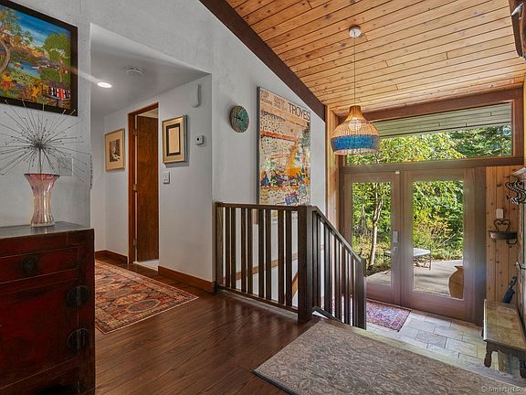 Tucked away on 2 acres of serene, natural landscape in bucolic East Haddam, this custom Acorn Deck Home is a true retreat for nature lovers, creatives, and those seeking peaceful modern living. Surrounded by native gardens including a tranquil water feature, this mid-century modern gem offers a rare treehouse-like atmosphere, blending indoor comfort with outdoor beauty. Inside, you'll find 4 bedrooms and 2 full baths with dramatic cathedral ceilings, exposed fir beams, walls of windows trimmed in mahogany and skylights that flood the space with natural light. The updated gourmet kitchen is ideal for both culinary adventures and entertaining, featuring generous prep space and a sleek induction cooktop. The main level is perfect for entertaining with access to both decks. A well-thought design with two bedrooms and a full bath on each floor provide privacy. The lower level adds flexible living space with 2 additional bedrooms, a full bath, and a separate entrance; perfect for guests, multigenerational living, or a home office setup. Thoughtful recent upgrades include: new roof on the home and 2-car detached garage, new furnace, new AC mini splits, hot water heater, and water filtration system, brand-new septic system, whole-house generator, renovated entryway and kitchen island and washer/dryer. Whether you're looking for a weekend getaway or a full-time sanctuary, this one-of-a-kind home offers timeless architecture, privacy, and convenience. 2 hours from NYC and Boston. East Haddam is home to more than 60 miles of hiking trails, a weekly summer music event, the Goodspeed Opera House, Gillett Castle State Park, and Devils Hopyard State Park. Acorn Deck House operates today, producing high-end homes out of its factory in Acton, MA using the same post and beam construction and natural materials. A 1500 sq ft version of this home is priced by Acorn at $900,000 for the kit and estimated construction costs. Every component of this 1974 mid- century treasure is available today from the factory, and additions can be custom designed.