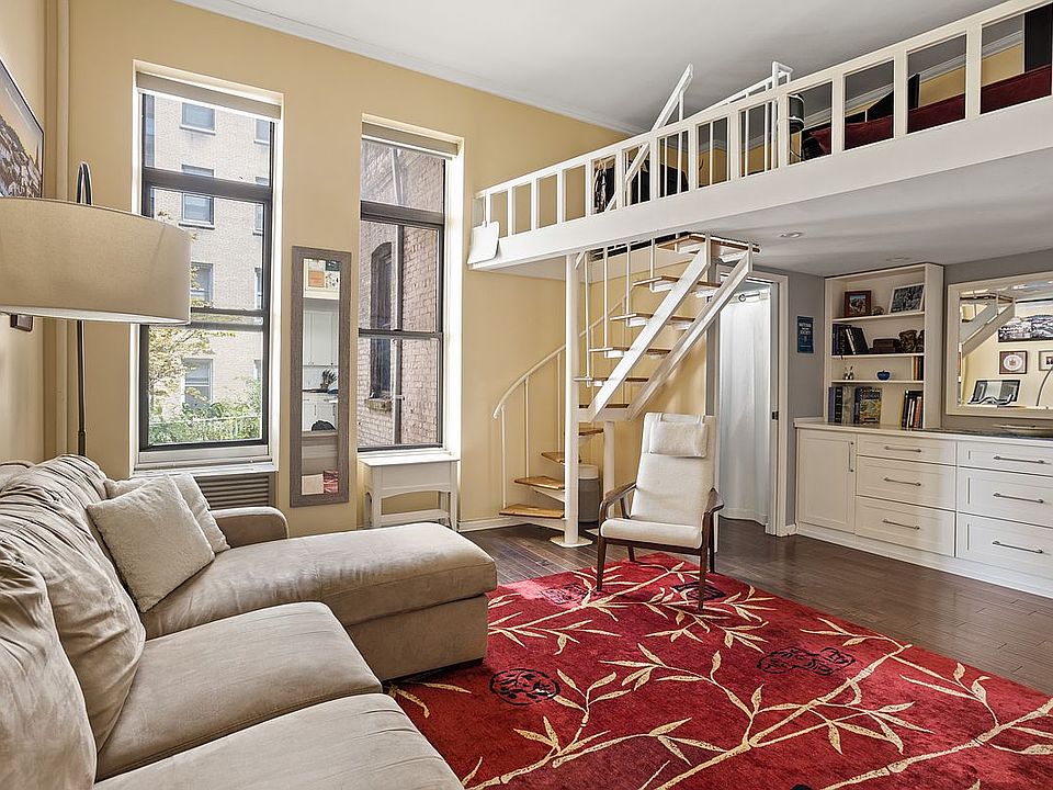 ONE OF A KIND ON THE UPPER WEST SIDE! Up one flight at 331 West 85th Street is a renovated, spacious, peaceful one-bedroom apartment in excellent condition. Both bathroom and kitchen have been beautifully remodeled to maximize the space and storage. An open kitchen, with breakfast bar, features a Thermador 5-burner range, hood and dishwasher, a Blomberg fridge, and a LG combination washer/dryer. The slate-floor bathroom has floor to ceiling cabinetry and a walk-in tiled shower. Above the well-appointed living room is a spiral staircase leading to a loft area which can serve as a home office or den. The living room and bedroom feature 12’ ceilings with tall garden-view windows outfit with electronic shades. This home has ample storage space with tasteful built-ins and four closets, including one in the loft space. Subletting permitted for 2 years of ownership. Townsend Mews is a co-op comprised of five buildings and is pet-friendly, has a live-in super, and is just half a block away from Riverside Park.