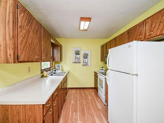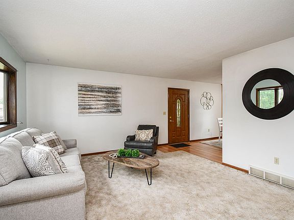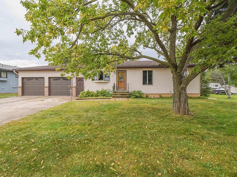 Discover small town charm! This solid ranch home has a steel roof, steel siding, leaf guards on the gutters and a heated garage. Laundry hookups on the main level AND in the basement. Additional room in the basement could be an office, with lots of other space downstairs with an additional living area and room for hobbies and storage. Quiet, yet convenient location. Lovely and spacious backyard! All appliances stay.