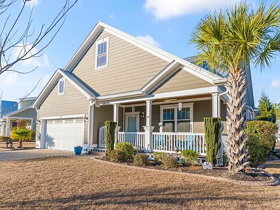 This thoughtfully maintained Lowcountry-style home surprises you with refined finishes, an inviting layout, and a serene pondside setting just minutes from the coast. Offering three bedrooms and two bathrooms, the interior is filled with natural light, elegant moldings, and a warm living room anchored by a natural gas fireplace. The kitchen feels both polished and functional with freshly painted cabinetry in curated designer tones, updated backsplash, and brushed nickel blown-glass pendant lighting, while all kitchen and laundry appliances convey for added convenience. An EZ Breeze room expands the living space, adding a comfortable, light-filled room designed to be enjoyed throughout the seasons while overlooking the pond and fountain. The backyard is a standout feature with lush landscaping, shade trees, flowering perennials, vinyl fencing, and peaceful water views. Outside, the home continues to impress with Hardie board siding, sleek metal roofing, and a paver driveway that adds durability and a sophisticated touch. A solid cedar pergola, extended brick patio, freshly painted rear steps, and ornamental walking bridge enhance both form and function, while the front deck has been refreshed with new paint and a brand-new gate. Additional highlights include a luxury trim package, updated ceiling fans, glass shower door, storm door, Rain Bird irrigation system. Curbscape edging adds a finished look to the landscape, all set within a natural gas community that blends Lowcountry character with modern comfort all while being minutes to the coast.