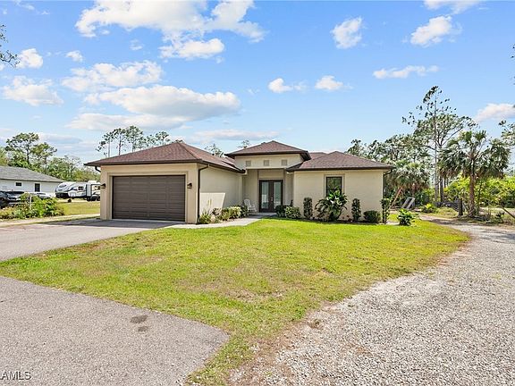 This lovely home brings comfort, style, and endless possibilities. No HOA and NO restrictions along with 1.59 acres make this a fabulous opportunity for you to embrace the wonderful SWFL weather and enough land to store your RV's,Boats,Trucks,watertoys! This beautifully designed 3bd + den, 2ba home with a 2-car garage offers the perfect blend of modern elegance and functionality 24x24 Porcelain Tile throughout – sleek, durable, and stylish Gourmet Kitchen with wood cabinets, granite countertops & stainless-steel appliances Luxurious Bathroom featuring granite countertops & modern finishes. Elegant Tray Ceilings & Crown Molding adding a touch of sophistication Prime Location & solar panels for energy efficiency and will be paid off in full at closing! R2 Zoning – where you can consider so many potential options for this expansive yard! Build a mother-in-law suite or additional property, add a pool with extended lanai, or possibly garden or livestock. Close to top-rated schools, the new Publix center, shopping, and dining and just a short drive to the East coast makes this home a haven to enjoy the Florida lifestyle Schedule a private tour today!