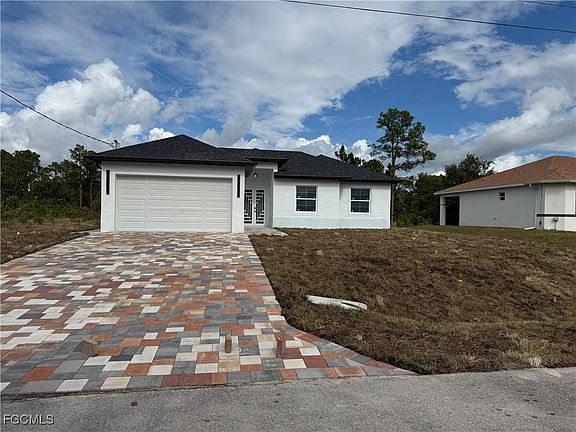 Beautiful new construction nearly complete and ready for its first homeowners! This thoughtfully designed 3-bedroom, 2-bathroom home features 1,501 sq. ft. of living space and a spacious 2-car garage. The interior boasts elegant large porcelain tile throughout, modern fixtures, and a spacious open floor plan ideal for both everyday living and entertaining. The kitchen is highlighted by its stylish finishes and functionality, while the master suite offers dual vanities and a walk-in shower for a spa-like experience. Built with durability and safety in mind, this home includes PGT hurricane-impact windows and doors, including the garage door. Step outside to a generously sized lanai perfect for family gatherings and a beautifully paved driveway that adds to the home’s curb appeal. Located on a .24-acre lot in a rapidly growing area of Lehigh Acres, this home offers the perfect combination of style, comfort, and peace of mind. With no HOA and located near shopping, schools, and major roads, this is an incredible opportunity to own a brand-new home in a thriving community.