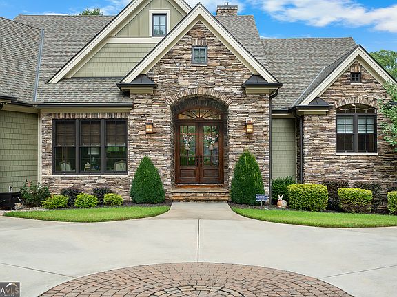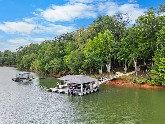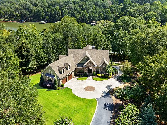 Custom-Built Waterfront Retreat on Lake Hartwell! This extraordinary residence seamlessly blends timeless craftsmanship with modern comfort. Designed with uncompromising attention to detail, the home offers three finished levels with 4 spacious bedrooms, each with its own en-suite bath and extraordinary privacy as it sits on 2.21 acres! From the moment you step inside, it is clear this property stands apart. Entering through the stacked-stone front porch, you are welcomed by an elegant foyer featuring an arched opening, richly stained oak floors, and 8" cove moulding. The coffered ceiling, inlaid with tongue-and-groove pine, is enhanced by surround sound speakers and adjustable lighting. The striking centerpiece is the stacked-stone fireplace, accented by a honed cedar mantel crafted from a family tree. Expansive windows and french doors on both levels fill the home with natural light while framing magnificent lake views. The gourmet kitchen is a chef's dream, equipped with professional-grade Wolf and Jenn-Air appliances, including a smart double oven, microwave, and six-burner propane cooktop beneath a custom chateau-style hood. An oversized island topped with granite offers ample prep space and doubles as the perfect gathering spot. A beverage station with wine storage, refrigerator, and cooler makes entertaining effortless, while a walk-in pantry provides abundant storage. Seamless access to the screened porch and covered rear deck makes dining al fresco both convenient and inviting. The main-level primary suite is a true retreat, easily accommodating a king bed, full sitting area, and more. Remote-powered roman shades reveal sweeping views of the lake and landscaped grounds with the touch of a button. Dual walk-in closets feature custom adjustable shelving, jewelry and belt storage, pull-out rods, and built-in drawers. The spa-inspired en-suite bath includes a freestanding porcelain tub with period-style faucet, custom shelving, and a glass-enclosed marble shower with built-in bench and shelving. The top level features a very spacious bonus room that allows access to the security monitoring panel and offers additional storage. The daylight basement expands the home's versatility with a second family room, spacious recreation room (bar area with refrigerated under counter drawers, a soft ice machine, stainless steel sink and under counter lighting), cedar closet, and two additional bedrooms-each with its own en-suite. A finished flex room offers endless possibilities, while outdoor living continues with a partially covered patio, 7 person HotSprings hot tub, and serene lake views. The covered area of the patio is below the screened in porch and currently the golf cart stays plugged in there. Engineered for both comfort and efficiency, the home is spray foamed insulated, zoned HVAC with a dedicated system for the primary suite, central vacuum system, extensive security system, and an underground propane tank serving the fireplace, stove and a tankless hot water system. Space has also been reserved for a future elevator. The outdoor setting is nothing short of a dream! Immaculately landscaped grounds lead to a detached storage building with shelving and power, and a concrete path guides you to the private covered aluminum max size dock. Featuring composite decking, Aqua Stairs, dual boat lifts, a jet ski port, and a touchless remote-operated boat cover, the dock sits on deep water in a peaceful channel, just minutes from the lake's main body. Conveniently located near shopping, dining, medical facilities, and I-85, this remarkable property offers both privacy and unmatched accessibility-an exquisite retreat designed for those who demand the very best in lakefront living! Furniture, boats and golf cart are available for purchase.