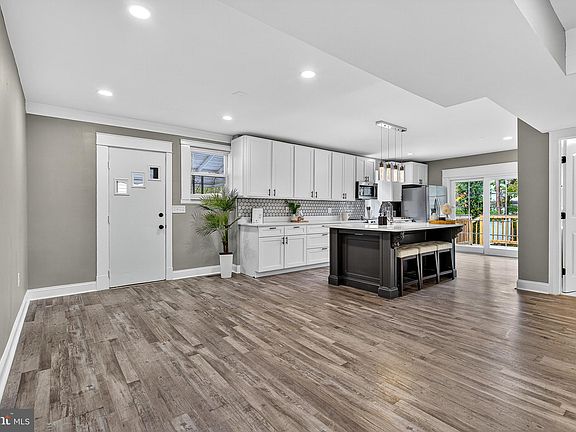 Welcome to this absolutely stunning, fully renovated single family home, where classic exterior charm meets cutting-edge contemporary design. Perfectly nestled on a tree-lined street in an established neighborhood, this property offers a turn-key lifestyle defined by premium finishes, a versatile layout, and an ideal location. Step inside to discover a bright, airy, and expansive open-concept main level. The home's sophisticated aesthetic is set by the designer neutral palette, featuring modern gray walls, crisp white trim, and gorgeous wide-plank, gray-toned Luxury Vinyl Plank (LVP) flooring that flows seamlessly throughout. Recessed lighting brightens every space, highlighting the impeccable renovation. The heart of the home is a chef’s dream kitchen. Elegant white shaker cabinetry provides abundant storage, beautifully contrasted by a large, substantial dark gray/black center island with classic carved details and comfortable bar seating. White, subtly veined quartz countertops and a chic hexagon tile backsplash create a polished look. The kitchen is completed by a full suite of stainless steel appliances, including a modern gas range and French-door refrigerator. The home offers well-appointed bedrooms across multiple levels, including the inviting main-floor bedrooms and highly versatile rooms under the roofline with stylish angled ceilings on the upper level. All full bathrooms are brand new and feature a modern, luxurious feel. Showers are encased in bright, large-format marble-look tiles for a spa-like retreat. Brand new vanities, modern lighting, and pristine white fixtures complete the clean, contemporary aesthetic. The exterior is equally appealing, starting with the handsome, gray-painted bungalow exterior and a welcoming covered front porch—the perfect spot for morning coffee. In the back, sliding glass doors open onto a newly built wood deck and staircase, leading down to a large, level backyard. The yard is fully enclosed with a mix of a white privacy fence and chainlink, offering a great space for recreation and relaxation, plus a storage shed for yard equipment. This renovated property offers the rare chance to enjoy the quality and style of new construction combined with the character of an established neighborhood. It’s an ideal setting for those seeking a sophisticated, move-in-ready dream home. Don't miss the opportunity to become the owner of this amazing home and schedule your showing today!