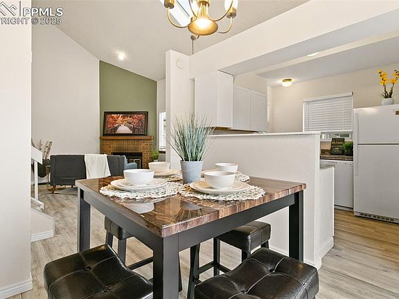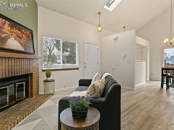 The next best opportunity in the desirable D20 School District is available and looking for the perfect Buyer! Don’t miss this rare opportunity to own a stunning 3-bedroom, 2-bath home perfectly situated on a serene corner lot featuring mature trees. From the moment you step inside, you’ll be captivated by the vaulted ceiling and sky light that floods the space with natural light, creating an open and airy feel. The spacious primary suite offers a peaceful retreat, while the inviting wood-burning fireplace sets the stage for cozy winter evenings. When summer arrives, you’ll appreciate the comfort of the brand-new air conditioning. Step outside to a generously sized deck, where you can take in breathtaking views of iconic Pikes Peak—perfect for entertaining or unwinding after a long day. The oversized 2-car garage provides ample space for vehicles, hobbies, or extra storage, making it ideal for those who need flexibility. Nestled in a sought-after neighborhood with top-rated schools to choose from, this home offers the perfect blend of tranquility and convenience. This home has room to personalize without needing a large budget but ready to move in —schedule your private showing today before it’s gone!