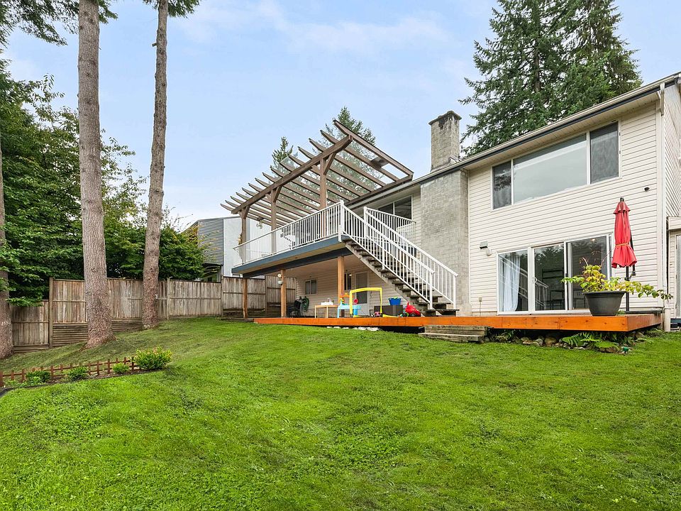 Welcome to this beautifully renovated 2-storey single-family home with over 2,800 sqft of thoughtfully designed space. Featuring 4 spacious bedrooms plus a den and 3 full bathrooms, this home is perfect for growing families. The main level offers a bright, functional layout with a cozy fireplace and access to a 309 sqft covered deck—perfect for year-round enjoyment. The lower level includes a 1-bedroom + den suite with separate entrance, ideal for extended family, guests, or rental income. Tastefully updated with over $180K in quality renovations, this move-in-ready home offers exceptional value. Located just minutes from Inlet SkyTrain Station, and less than 10 minutes from shopping centres, cafes, restaurants, and more—A must see!