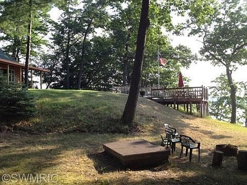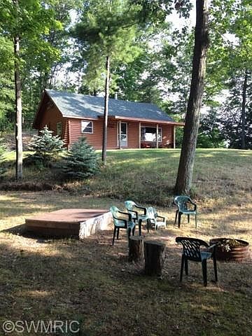 UNIQUE,PICTURESQUE HAMLIN LAKE PARCEL - Rustic, pristine paradise on 2 acres This well kept and maintained property has it all; woods, privacy and 132 ft. of private Hamlin Lake frontage! Neat and clean 3 bedroom cabin with a view of Hamlin Lake from all directions, porch and separate decking overlooking lake. The private frontage has a sandy area, steel seawall, dock and yard shed. This unique property also features a 30x 40 ft. pole barn to store the essentials of up north living. Added income in the summer with weekly rentals. Many updates on cabin. Enjoy State Park hiking trails across this road. This is a rare find! Sit by the fire pit in the evening and and recount the many memories the Hamlin Lake brings one sunset at a time