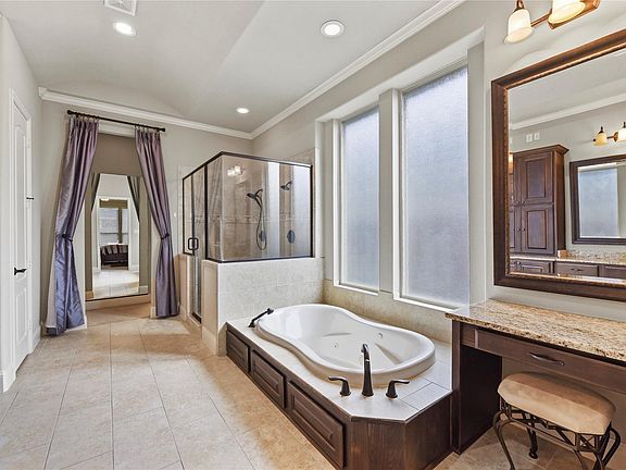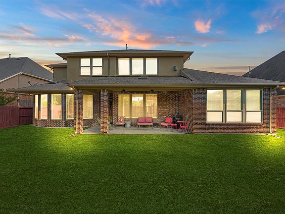 Located in the prestigious Reserve at Clear Lake, this 5-bedroom, 4.5-bath residence offers a spacious layout with 4,236 sqft and defines luxury living. The welcoming curb appeal presents with a stone and stucco elevation and a 3-car garage situated on a 10,105 sqft lot. Inside, enjoy elegant touches lof the curved wrought iron stair rails,light tile flooring, wood flooring in home office and 3" plantation shutters on front-facing windows. The high-end kitchen is a chef’s dream, featuring granite countertops, stainless steel appliances, double ovens, and a stone and glass mosaic backsplash complimented w/sizeable island. The 2nd fl offers expansive game room, dedicated theater room with risers and a secret room behind the bookshelves! The 1st fl primary suite boasts wall of windows w/serene backyard views, a spa-inspired ensuite bath w/double vanities, a soaking tub & separate shower & large split walk-in closet. Enjoy neighborhood amenities, trails, parks, splashpad, sparkling pool.
