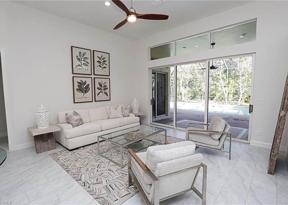 Magnificent 4 bedroom plus den home with pool. This newly renovated and tastefully decorated single family home in award winning community of Bonita Bay. Great room floor plan with white shaker cabinets, large island with quartz countertops, opens to dining and living area. Master suite offers a large king bed, walk-in closet, spacious walk-in shower and stand alone tub. Two of the guest suites offer a queen bed and the 3rd with 2 twin beds. Den has a sleeper sofa for any guests. Beautiful pool area and seating area to enjoy with private preserve and landscape views. Take the shuttle to the private park on Bonita Beach for a day of sun and surf. Three waterfront recreational areas include Spring Creek, which features canoe and kayak launches and picnic area. Riverwalk Park offers lighted tennis courts, fishing piers, and children's playground. Estero Park offers a pavilion, picnic area, butterfly park and boardwalk to Estero Bay. Beach Club can be accessed by tram provided by Bonita Bay Beach Club provides lounge chairs, restroom/showers, charcoal grills and gazebo with picnic tables.