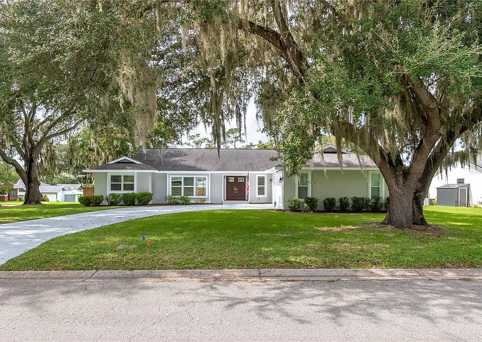 This Beautiful Shady Wood Pool home boasts 3/2 split bedroom plan. The home is on a corner lot that is graced with large Grandaddy Oaks. The back screened porch overlooks the large pool is just waiting for more summer family fun. The home is on a quiet dead end road. The home has an Open Floor Plan with a wood burning fireplace, guest side of the home has 2 bedrooms with one having a bonus area that could be used for an office, reading room or tv nook. The Primary bedroom is tucked away on the other side of the home with an ensuite bath, with a large shower double sinks and walk in closet. Recent updates fresh interior paint, garage floor sealed, bedroom carpeting, pool deck painted. A/C replaced in 2020, roof replaced 2014. The home's location is really perfect for jumping on 31st street and getting anywhere in Ocala. This home will NOT last so make your appointment to view it today !