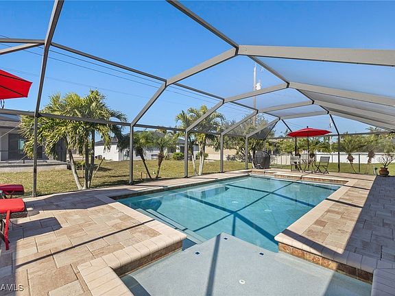 Move-in ready CBS pool home in the highly desirable Surfside neighborhood of SW Cape Coral. No flood insurance is required, as the property benefits from a FEMA exemption. The expansive outdoor living area is designed for both entertaining and relaxation, featuring a 49x10 covered lanai that provides ample shaded space. The entire outdoor area is enhanced with elegant pavers, complementing the impressive 400 sq. ft. saltwater pool, which includes two sun shelves, bubblers, and an electric heater. Whether hosting guests or unwinding at the end of the day - positioned with western rear exposure, this outdoor retreat offers the ideal setting for enjoying Southwest Florida’s renowned sunsets.