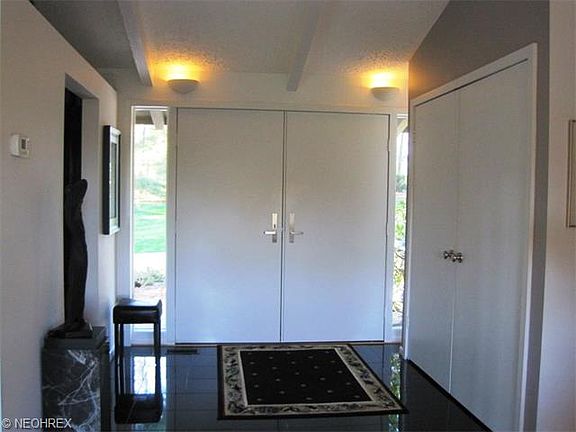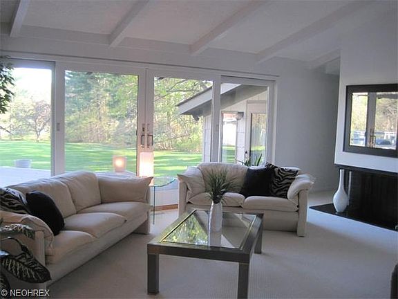 Absolutely stunning ranch home boasts numerous updates. Beamed, cathedral ceilings in formal living room with fireplace, walls of glass, and sliders to large deck. Sleek, professionally designed kitchen with pull-out drawers, double ovens, trash compactor, and eat-in area. Engaging family room features fireplace and built-ins. Formal dining room overlooks sunroom. Inviting sunken, vaulted sun room offers wall of windows and tranquil views of park-like backyard. Two full baths completely updated. Large storage/workshop barn. Additional storage room off 2 car garage. Lush level backyard. Wooded setting. Very nice!