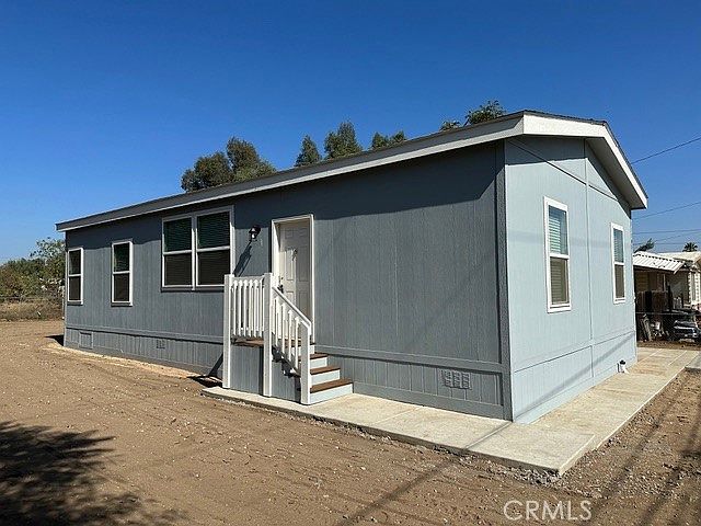 Two year new 3 bedroom, 2 bathroom manufactured home on land with a permanent foundation on a cul-de-sac. This beautiful home offers a kitchen with a refrigerator, gas range, dishwasher, center island with stainless steel sink, and granite counter tops with bar seating. Lots of cupboards and countertop space. The open floor plan offers lots of light and plenty of living space. The Primary bedroom boasts a full bathroom with a sink and a large closet. There are two other good-sized secondary bedrooms and a full bathroom. Central Air Conditioning & Heat to help you stay comfortable year round. Low-flow showers & toilets in both bathrooms. Inside laundry room with washer and gas dryer hook-ups. The property is located close to both the Ortega Highway and the I-15 Freeway for easy commuting. It's just minutes from schools, stores, restaurants, shopping, and the Lake. Plenty of room for barbecues or entertaining friends, family, or pets. The large lot will accommodate lots of vehicles and the long driveway will easily fit two cars within the front gated area. No HOA and lower tax area.