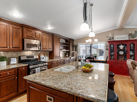 Welcome home to this cozy 3-bedroom, 2-bath Stallion Meadows home.  As soon as you set foot inside, a warm and inviting feeling hits you making you feel right at home.  Nice and bright open floor plan.  Gorgeous kitchen with granite countertops, stainless steel appliances, lots of storage and counter space, breakfast bar, and open to the family room.  The master bedroom has its own private updated bath with granite counters and a tiled walk-in shower.  The 2 additional bedrooms are nicely sized.  Updated guest bathroom.  Indoor laundry room with storage.  Nicely sized fenced yard with a covered porch, 2-car carport, large 10.6x19 garage shed, and a 6.6x10 shed.  The property is located on a cul-de-sac giving you more privacy.  Enjoy the Stallion Meadows community pool, tennis court, clubhouse/recreational area, and RV parking is available.  This is a great location, with easy freeway access, and close to schools, and shopping, with a country feel.