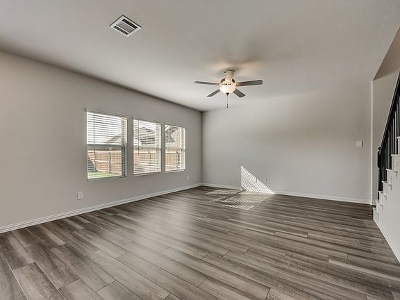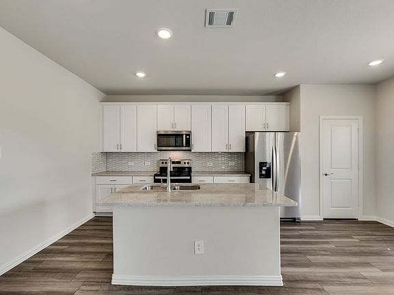 Step into this inviting two-level brick-style house, complete with an attached two-door garage. The first level boasts an open layout featuring a welcoming living and dining room alongside a stylish kitchen adorned with stainless steel appliances. The kitchen's modern charm is enhanced by a separate island and pristine white cabinets, complemented by ceiling fans that add a refreshing touch. Upstairs, discover three bedrooms and two bathrooms, each exuding elegance with white bathtubs and vanities. Convenience is key on this level, with a washer and dryer readily available. The main bedroom is a luxurious retreat, offering a dual vanity, a spacious walk-in closet, and an attached bathroom. Outside, a large backyard beckons, providing a perfect space for outdoor activities and relaxation. Embrace the seamless blend of modern amenities and classic charm in this well-appointed residence