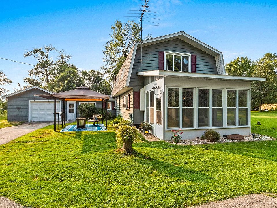 Nestled in the heart of Oak Orchard, approximately 25min from Green Bay enjoy great views of the water on one acre. Feel the breeze flow from the Bay while watching the sunrise in the 3 season room. Office/den & 1 bedroom on the main floor. Upstairs host two large bedrooms. Newer windows. Breezeway that leads to garage. Backyard contains numerous mature fruit trees and a chicken coop. Several public boat launches near by. Additional 100' lot with a driveway and shared well will be included ( parcel # 03434260151P )