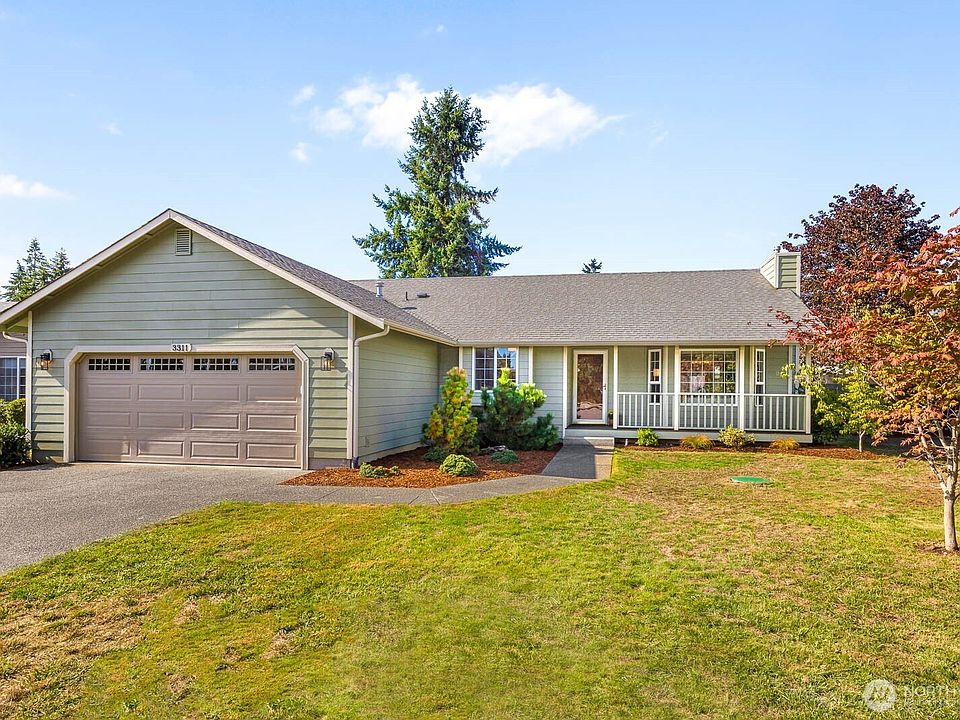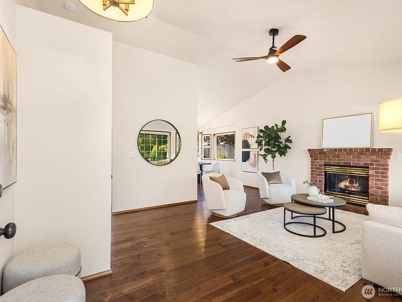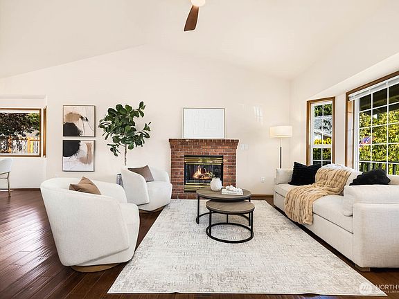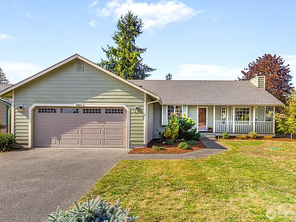 Welcome to this beautifully updated 3-bedroom, 2-bath rambler tucked in a peaceful Lacey cul-de-sac across from neighborhood trails and a park—perfect for walks and playtime. Inside, enjoy vaulted ceilings, a cozy fireplace, and a bright kitchen with new luxury quartz countertops. Thoughtful updates include modern fixtures, fresh paint inside and out, and new bathroom vanities. The spacious primary suite offers a walk-in closet, ensuite bath, and private patio to the backyard. Relax or entertain on the large Trex deck overlooking an expansive fully fenced backyard. Enjoy fruit trees and moments around the fire pit! New furnace & A/C (2021) and large 2-car garage with 10' ceilings and ample storage. Located 15 mins to DT Olympia & JBLM.