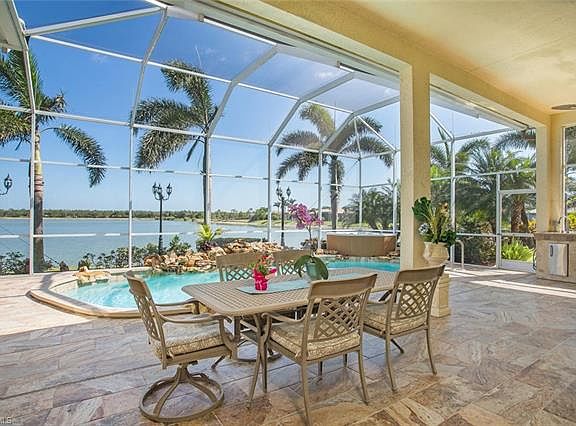 Elegance and easy living is enhanced in this Waterways Grand Floridian model, with a masterfully designed interior and exterior that transforms this property into a tropical retreat. Relax in the shade or sun in the lanai or either exterior patio with outdoor kitchens & lush landscaping while surrounded by the tranquility of a private spectacular fingertip lot. Enjoy the view from the sunny kitchen, family & living room or master bedroom, customized den & 3 baths; this is a must see with attention to detail. Fish or boat from the pier or your backyard on over 150 acres of connected lakes. Waterways of Naples provides a storage lot for RVs, commercial vehicles, etc., not offered in other neighborhoods. Enjoy low HOA fees that provide Xfinity Internet/TV fiber optic cable with DVR & more, plus a tiki hut with grills, community pool, clubhouse, tennis and pickle ball, volleyball, tot lot, basketball, horseshoes, and an active HOA with activities for everyone. Nearby are Publix, Sheriff's Stations/EMS/Fire Dept., 3 schools K-12, and a charter school. A county park is planned nearby. Waterways is 20 minutes from Arthrex, Ave Maria, & several public golf courses. Shown by appointment.