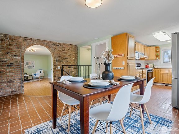 This beautifully refreshed 4-bedroom, 1.75-bath Bremerton home radiates relaxed charm & comfort. Major upgrades provide lasting peace of mind, including whole-house plumbing (2021), new roof (2024), tankless water heater, & fresh interior & exterior paint. Inside, you’ll find plush new carpet, updated window blinds, & a custom closet system in the primary suite that adds thoughtful function. The kitchen is equipped with a newer refrigerator & dishwasher, while the eye-catching brick accent wall & stylish tile floors lend a relaxed, coastal-inspired feel. Enjoy a peek-a-boo view from the sunny deck, perfect for unwinding or entertaining. A detached garage adds valuable storage or workshop space—this move-in ready gem truly is a must see!