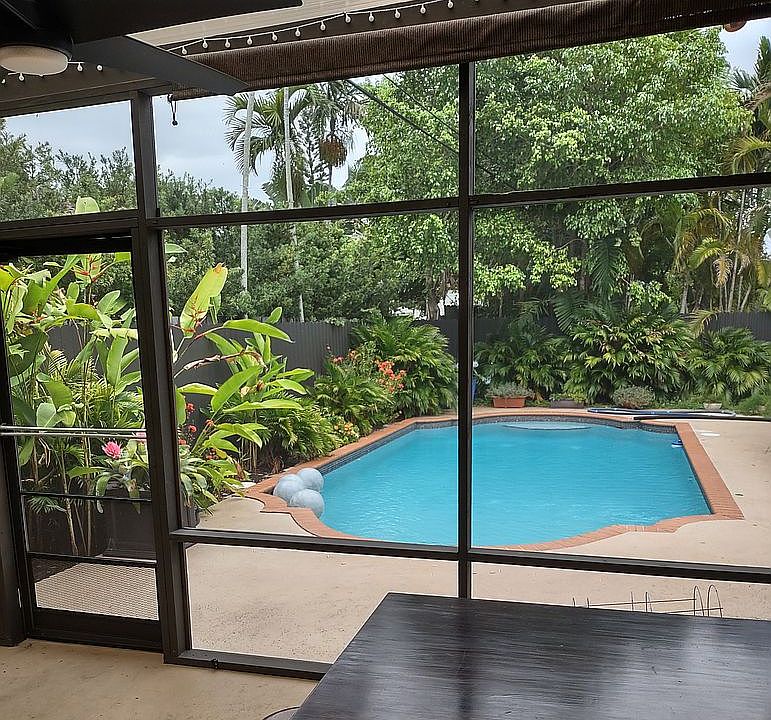 The pool is 15x30 and immaculately maintained. The yard features green spaces, a perimeter fence and a screened pergola 20x14 (not included in house sqft calculation).