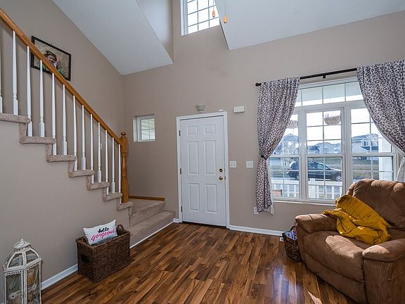 Welcome this this charming 2 story in SW Ankeny, on this quiet cul-de-sac, just blocks from the dog park. It has a very open feel to it from the second you walk through the front door. It has a nice flow from the living room, through the kitchen and to the master bedroom conveniently located on the first floor. The second floor offers 2 nice sized rooms with a shared bathroom and tons of closet space both in the bedrooms and throughout the entire house. The basement has newer carpet with tons of room for entertaining, along with newer LVP flooring in the spacious laundry room. Outside offers a large driveway with tons of parking space, covered porch out front, a huge composite deck out back, a large shed for storage and the padded play area is hard to beat with this awesome play set that will occupy the kids for hours. All appliances stay with the house. Schedule a showing today!