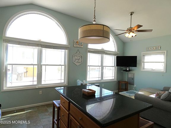 Cathedral ceilingsTankless water heaterGranite kitchen counter-topsBeach side windowsStainless steel appliancesTile floor