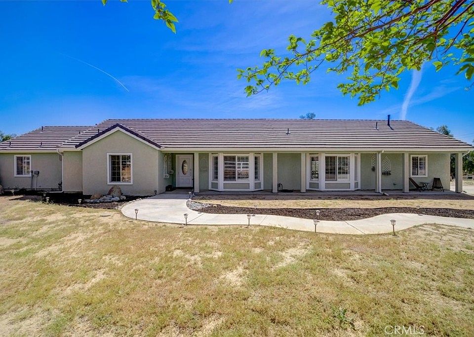 Welcome to your dream ranch style home! This stunning 4 bedroom, 2 bathroom property boasts charm and luxury in every corner. Upon entry, you are greeted by a charming living area perfect for entertaining guests. The huge great room follows, complete with a built-in bar that's perfect for hosting parties and events. The property offers breathtaking views of the beautiful land throughout the home. You'll love spending time in the completely updated kitchen, featuring new quartz countertops, white shaker cabinets, and extra added counter space. A newly renovated stone floor to ceiling fireplace is nearby and runs on natural gas with fireglass. The hall bathroom has been fully renovated with a tile shower and new vanity, providing a spa-like experience. The master bedroom is a true retreat, featuring a large master bathroom with a soaker tub and walk-in shower, a walk-in closet, and access to the outside area. New flooring throughout, including tile and laminate, adds an extra touch of elegance to this beautiful home. Save money on your energy bills with owned solar! The detached 8 car garage is a car enthusiast's dream, and fully finished with ample storage space. Further, the garage is fully finished including recessed lighting and a split heating/ AC unit system. The property sits on over two acres and includes a horse arena and stables, perfect for animal lovers. Enjoy outdoor living at its finest in the nice patio area with a gazebo for shade. Don't miss your chance to own this breathtaking property that is sure to impress your family and friends. Schedule your showing today and fall in love with your new home!