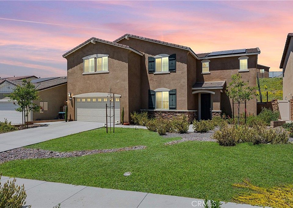 Discover the Winchester lifestyle in this stunning single-family residence offering 5 bedrooms, 3 full bathrooms, a spacious loft, and a versatile bonus room. Perfectly situated in desirable French Valley, this 2,905 sq. ft. home sits on an expansive 11,574 sq. ft. lot, thoughtfully designed for both comfort and style. The open-concept floor plan creates a seamless flow from the kitchen into the family and dining areas—ideal for hosting gatherings or enjoying everyday living. Step outside to a beautifully landscaped and hardscaped backyard, an inviting retreat for relaxation or entertaining. Designed with convenience in mind, this home features a main-level bedroom and full bath, a flexible bonus room on the first floor, and a generous loft upstairs. Enjoy elegant finishes throughout, including hard surface flooring, recessed lighting, plantation shutters, a walk-in pantry, and a spacious second-level laundry room. Additional highlights include paid-off solar panels, a 2-car garage with epoxy flooring, and energy-efficient design. This exceptional home truly has it all—style, space, and upgrades. Don’t miss your chance to make it yours!