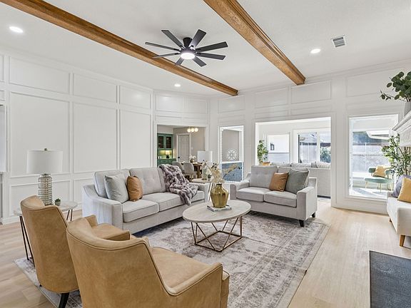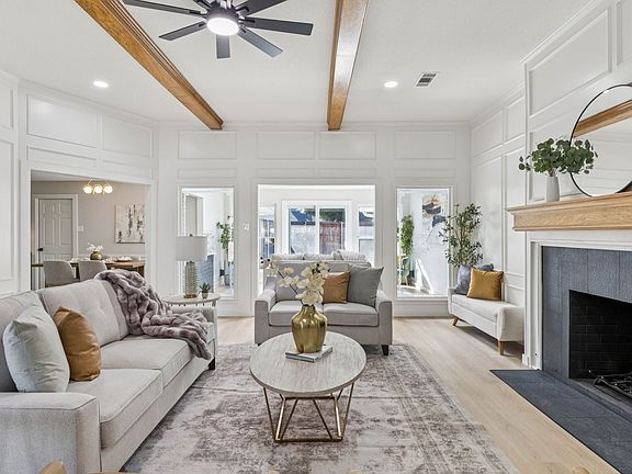 Completely reimagined and move-in ready, this beautifully updated Plano home sits on a spacious corner lot and offers designer finishes throughout. The open-concept layout seamlessly connects the family room, dining area with butler’s pantry, and a stunning chef’s kitchen—ideal for entertaining with custom wet bar. A separate executive office with motion-sensor lighting and a light-filled sunroom provide additional functional living space. The 5th en-suite bedroom, could also be used as a game room, media room, or private mother-in-law suite. A 3 car garage, patio, and fully fenced backyard complete the property. Extensive upgrades include luxury SPC flooring throughout, custom slim-shaker cabinetry, Calacatta countertops, designer lighting, fully remodeled bathrooms with SoHo Tile, a custom fireplace with Cascade Essence tile and natural ash wood mantle, and a wet bar with Calacatta Gold quartz and floating white oak shelves. Major system improvements include foundation repair with transferable warranty, full plumbing replacement to PVC, new electrical panel, solar panels paid off, full interior and exterior repaint, all new doors and trim, custom cedar shutters, and new landscaping. A rare combination of design, integrity, and flexibility in a prime Plano location.
