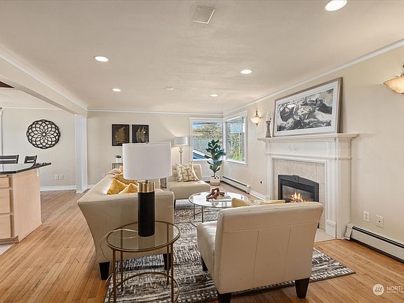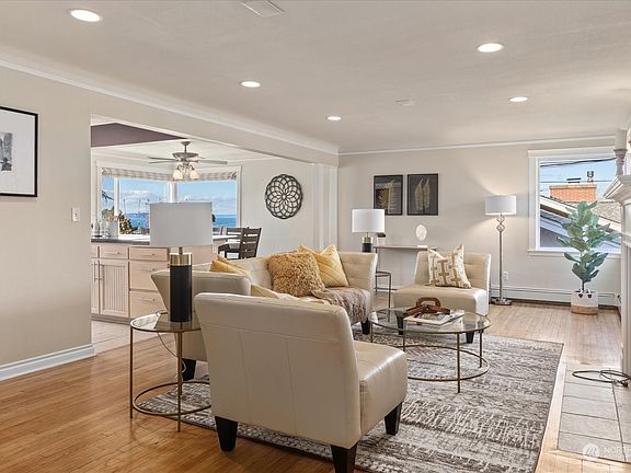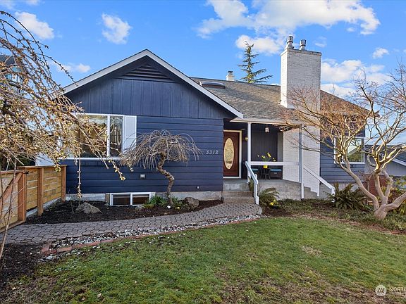 Classic Mid Century home on highly desirable Rucker Hill. Captivating views of Puget Sound and the Olympics abound from this gracious home. From the formal living room displaying beautiful hardwoods, the chef's kitchen with its commanding views, to the oversized bedrooms...this is the one you've been looking for. The spacious patio and terraced yard is perfect for gardening and entertaining, and the view of the sunsets over the Olympics will take your breath away. New office/rec room and garage space added 2019-21, fully permitted, with EV charger. The lower floor with over 1200 sq ft can easily be converted to MIL. Blocks to hospital, minutes to the waterfront, restaurants and shopping...this location and neighborhood are waiting for you!