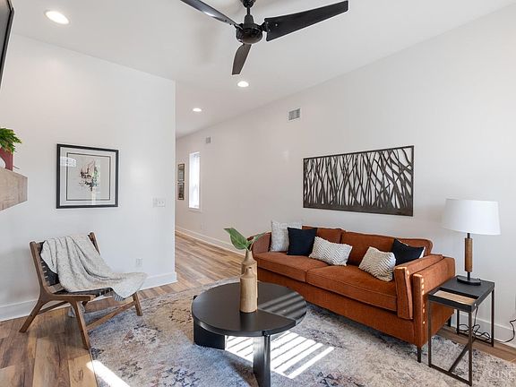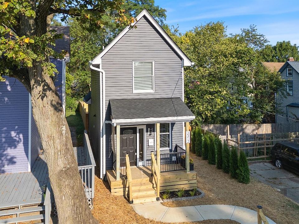 Completely renovated from top to bottom, with everything new and move-in ready! The charming covered front porch enhances curb appeal. The kitchen is a showstopper with vaulted ceilings, recessed lighting, and a large island. Enjoy the convenience of first-floor laundry and a half bath. Upstairs, find two bedrooms with ceiling fans and a full bath. The backyard is perfect for relaxing, featuring a deck and privacy fence. Eligible for tax abatement!