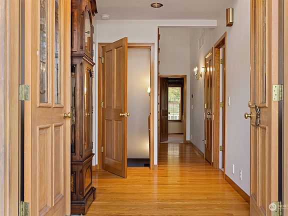 This gorgeous home has single level living and is privately situated overlooking Whatcom Falls Park, just steps away from the trail system. This home was custom built with attention to every detail. The rooms are spacious and each floor has a bedroom on it with its own dedicated bath. The office/den opens to the primary bath and could be a 4th bedroom, as it has its own 3/4 bath. The rooms are large and the floor plan is open with walls of windows looking out toward the back yard and the park beyond. Covered and uncovered outdoor patio area surrounded by low maintenance mature landscape, and extremely private. There is even a spacious woodworking shop at the lower level, as well as a large mechanical room and a secret “safe room"!