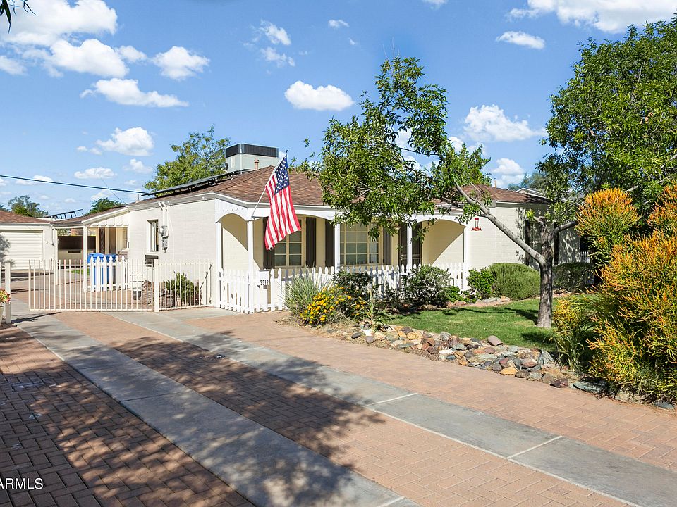 Nestled in the coveted Encanto North Historic District, this timeless home blends classic character with thoughtful updates for today's lifestyle. From the moment you arrive, you'll sense the warmth and pride of ownership that define this special property. Greet each morning with sunrise views and an open skyline from your living room or front yard—a rare gift in the heart of Phoenix. Inside, you'll find 2 bedrooms, 2 full bathrooms, and a flexible office with a large closet that can easily be converted to a third bedroom. Owned solar panels deliver tremendous energy efficiency and savings year-round, while fresh interior and exterior paint and updated kitchen and baths elevate the home's charming appeal. The spacious primary suite offers more room and versatility than most historic floor plans. Step outside to a detached two-car garage that flows into a covered patio with built-in counters - the perfect setup for an outdoor kitchen and effortless entertaining. The lush, garden-style landscape is alive with citrus trees, mature greenery, raised flower beds, and freshly planted winter rye, creating a serene private retreat. Located within walking distance to groceries, local eateries, and the scenic Phoenix College campus, and just minutes to downtown, entertainment, and major freeways, this move-in-ready gem captures the best of historic beauty, sustainability, and modern comfort - all in one unforgettable home.
