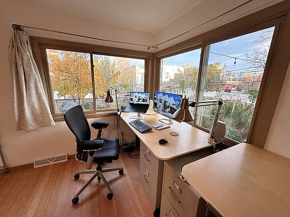 Art-filled furnished homeDowntown viewsHigh-end dacor gas rangeWindow seatBosch kitchen appliances
