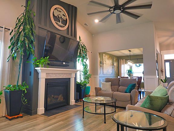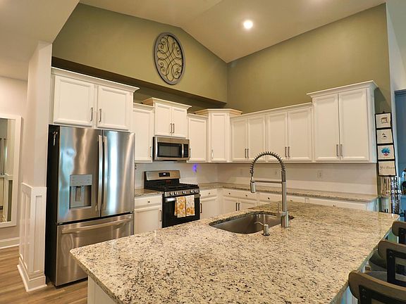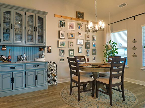 Comfy hammock swingsUpdated lightingLarge pantryCenter islandStainless steel appliancesGas stoveWainscoting custom touches