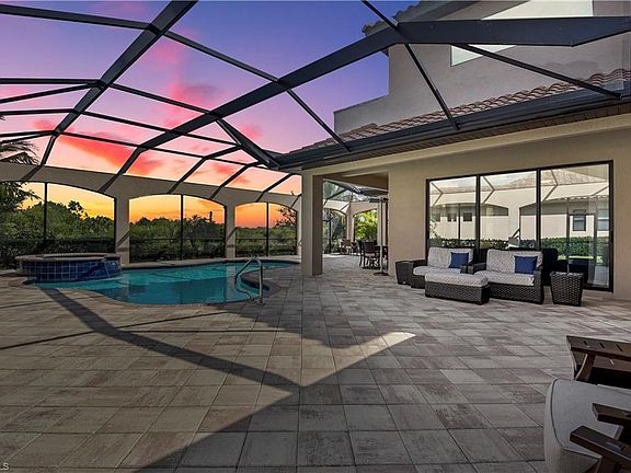 Luxury living in Runaway Bay @ Fiddlers Creek! Enjoy overlooking a 750+acre preserve area & bird sanctuary while backing up to a creek offering you a beautiful SWFL setting. Just built in 2015 & only seasonally lived in, this Laurel model is being offered as furnished & features a living room & family room layout, a gourmet kitchen (w/ gas powered range & wall oven/microwave), "aquarium" window in breakfast nook overlooking the pool lanai, a bonus room/4th bedroom on second floor (w/ wet bar, walk-in closet, & full bath), gorgeous stone flooring in main living areas, volume & tray ceilings, professional window tinting for energy efficiency, custom Coastal to Casual window treatments, high-end carpeting in bedrooms, wood flooring in the den/home office, elegant French door front entry & epoxy flooring in the 3-car garage. You will absolutely love the outdoor living space that provides the perfect place to entertain and for the entire family to have fun in the FL sun. The spacious pool lanai features a full summer kitchen, heated pool & spa, under truss dining area and a private boat dock. Fiddlers Creek offers superior Country Club living, and is just minutes from Marco Island.