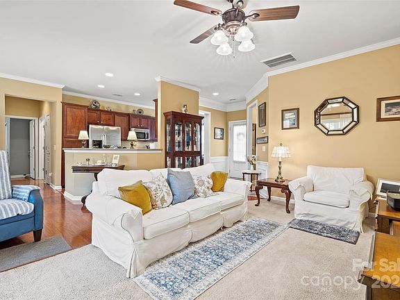 Step into the Berkley, a captivating villa model designed for effortless living in the heart of Sun City Carolina Lakes. This home offers a perfect balance of open-concept living and private retreats, all on a single, well-appointed level. The main living area seamlessly connects the great room, dining area, and kitchen, creating an inviting space perfect for entertaining. The great room features large windows that fill the space with natural light.The well-designed kitchen is a chef's delight, typically featuring a peninsula, corian countertops, and modern SS appliances. It's the perfect spot to prepare a quick meal or a festive dinner.The private owner's suite provides a peaceful sanctuary. It includes a spacious bedroom and an en-suite bathroom with a large walk-in shower. The generous walk-in closet offers ample storage. A second bedroom and a full bathroom are ideal for hosting overnight guests, or they can be used as a home office, hobby room, or den—adapting to your specific needs. A private screened-in lanai or patio extends the living space outdoors, providing a wonderful spot to enjoy your morning coffee or an evening cocktail while taking in the gorgeous Carolina weather.With its thoughtful layout and charming features, the Berkley is more than just a house—it's a home where you can truly relax and enjoy the vibrant 55+ lifestyle.