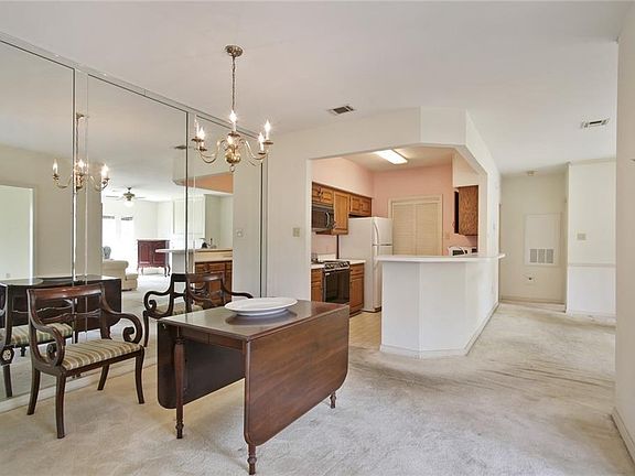 Rare ground floor, one-bedroom unit! Update it with your personal preferences. Price reflects average condition. Open floor plan connects living and dining rooms to kitchen and oversized den with wood-burning fireplace. Large, walk-in closet in the bedroom. Bath has jetted, garden tub. The washer and dryer are next to the kitchen. The living room could double as an office or guest bedroom. The fenced patio is off of the living room. AC replaced 2 years ago and serviced annually