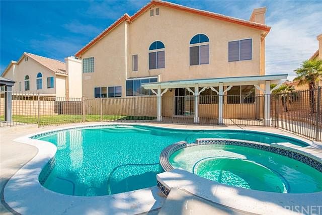 Fabulous Two-Story Pool Home Located in Prime Westside Neighborhood. As you Enter the Home You are Welcomed with a Vaulted Entry with a Designer Wrought Iron, Spiral Staircase. This Home has 5 Bedrooms and 3 Full Bathrooms. One Bedroom and Full Bathroom Downstairs. Spacious Living Areas, Formal Dining Room, Wet Bar with a Built-in Sink, Large Kitchen with Stainless Steel Appliances, a Large Center Island, Tons of Cabinets, & a Dining Area. Three Fireplaces Throughout, Ceiling Fans, & Vertical Blinds Throughout. Upstairs Features an amazing Master Suite, with a Large Walk-In Closet, Master Bathroom with a Custom Tiled Shower, Jacuzzi Tub, & Dual Sinks. Three Additional Bedrooms, Large Guest Bathroom with Dual Sinks. Fully Landscaped Yards, (lawn photos were taken previously, grass needs to be watered to revitalize the lawn). Covered Patio, a Gorgeous In-Ground Pool/Spa. This is a Must See!