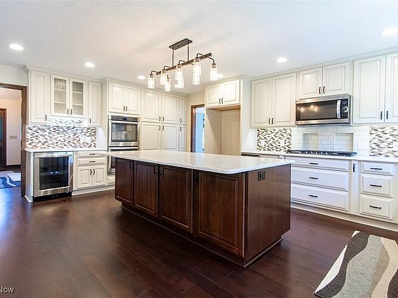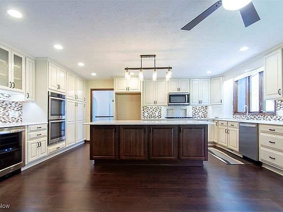Tucked away on two serene, park-like acres with its own private pond, this custom-built home offers a rare combination of space, comfort, and functionality—inside and out. A 36’x30’ heated outbuilding with electricity provides the perfect space for a workshop, car collection, or creative pursuits. Inside, you’ll find thoughtful updates throughout, including a vaulted living and dining area with a bay window, fresh carpet, and updated paint. The remodeled kitchen features quartz countertops, a generous island with breakfast seating, soft-close cabinetry, and stainless steel appliances, flowing seamlessly into a cozy eating area and screened-in porch for effortless indoor-outdoor living. The adjacent family room showcases a striking stone fireplace flanked by built-ins, plus a wet bar ideal for entertaining. A private study with another fireplace and built-ins leads through French doors to a library retreat. Additional living spaces include a spacious sunroom with deck access and a spiral staircase to a wine room, as well as a large laundry area and half bath on the main floor. Upstairs, the expansive owner’s suite offers its own fireplace, sitting area, private balcony, walk-in closet, and a luxurious en-suite bath with dual vanities. Four more bedrooms and two full baths complete the upper level. The walk-out lower level adds even more versatility, with a recreation space, second kitchen area, full bath, wine room, and access to a covered patio. A private greenhouse adds to the charm of the property, and with easy access to highways and shopping, this one-of-a-kind home truly has it all.