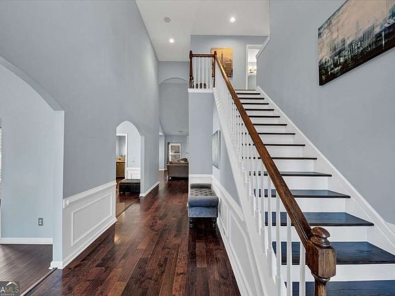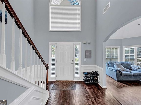 Introducing an exceptional 4-bedroom, 2.5-bath residence with 2,858 sq ft of beautifully designed living space, nestled in a private gated community just minutes from downtown Smyrna and I-285. A dramatic two-story foyer sets the tone, leading to elegant formal living and dining rooms ideal for hosting and special occasions. At the heart of the home, the soaring vaulted great room showcases a striking gas fireplace and opens through French doors to a charming patio and fenced backyard-perfect for effortless indoor-outdoor living. The gourmet kitchen offers abundant cabinetry, a spacious center island with breakfast bar seating, and generous counter space for both everyday meals and entertaining. The main-level owner's suite is a true retreat, featuring a spa-inspired bath with double vanities, soaking tub, separate shower, and a large walk-in closet. Upstairs, three additional bedrooms and a full bath provide comfort and flexibility for family, guests, or a home office. Hardwood flooring enhances the main level, while the low-maintenance yard ensures more time to enjoy the community's peaceful surroundings. Style, comfort, and convenience combine seamlessly in this gated neighborhood, offering easy access to shopping, dining, and major highways.
