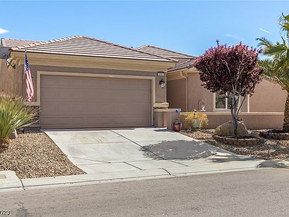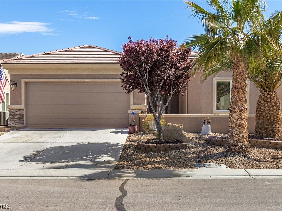 A fabulous Golf Course lot home awaits you in the 55+ Community of Sun City Aliante! This 3 beds, 2 baths beauty features a desert landscape, trees, stone accents, a 2-car garage, and a private courtyard great for receiving guests. Discover a spacious open floor layout boasting tall ceilings, tile flooring, pre-wired surround sound, bountiful natural light, and sliding glass doors leading to the backyard. The formal dining room with a dry bar is perfect for holding a feast! Impeccable kitchen offers built-in appliances, recessed lighting, ample wood cabinetry, Corian counters, stylish tile backsplash, a breakfast bar, and a bright breakfast nook. Continue onto the carpeted main retreat showing a private bathroom with a sizable walk-in closet and dual sinks for added comfort. Enjoy peaceful afternoons under the relaxing covered patio with a wonderful golf course view! This gem won't disappoint! Hurry!